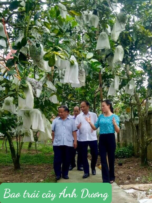 - Tiêu biểu có nhà vườn của chị Hưởng tại Đại từ đã kiên trì theo đuổi suốt hơn 10 năm qua và cung ứng cho thị trường trong nước, những trái bưởi được bao Túi trái cây của Công ty Ánh Dương luôn nâng cao được giá trị của sản phẩm, từng trái bưởi là những giọt mồ hôi, là tâm tình của người sản xuất thổi hồn vào đó.